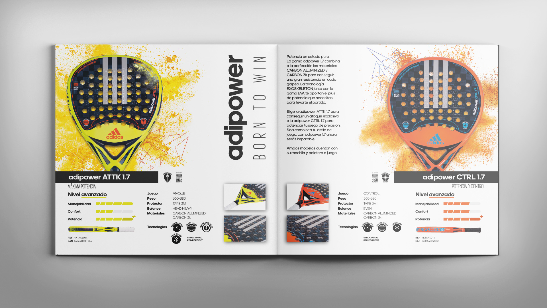 Este concepto gráfico tiene como eje central el catálogo de la colección, la página web y las redes sociales de adidas padel.