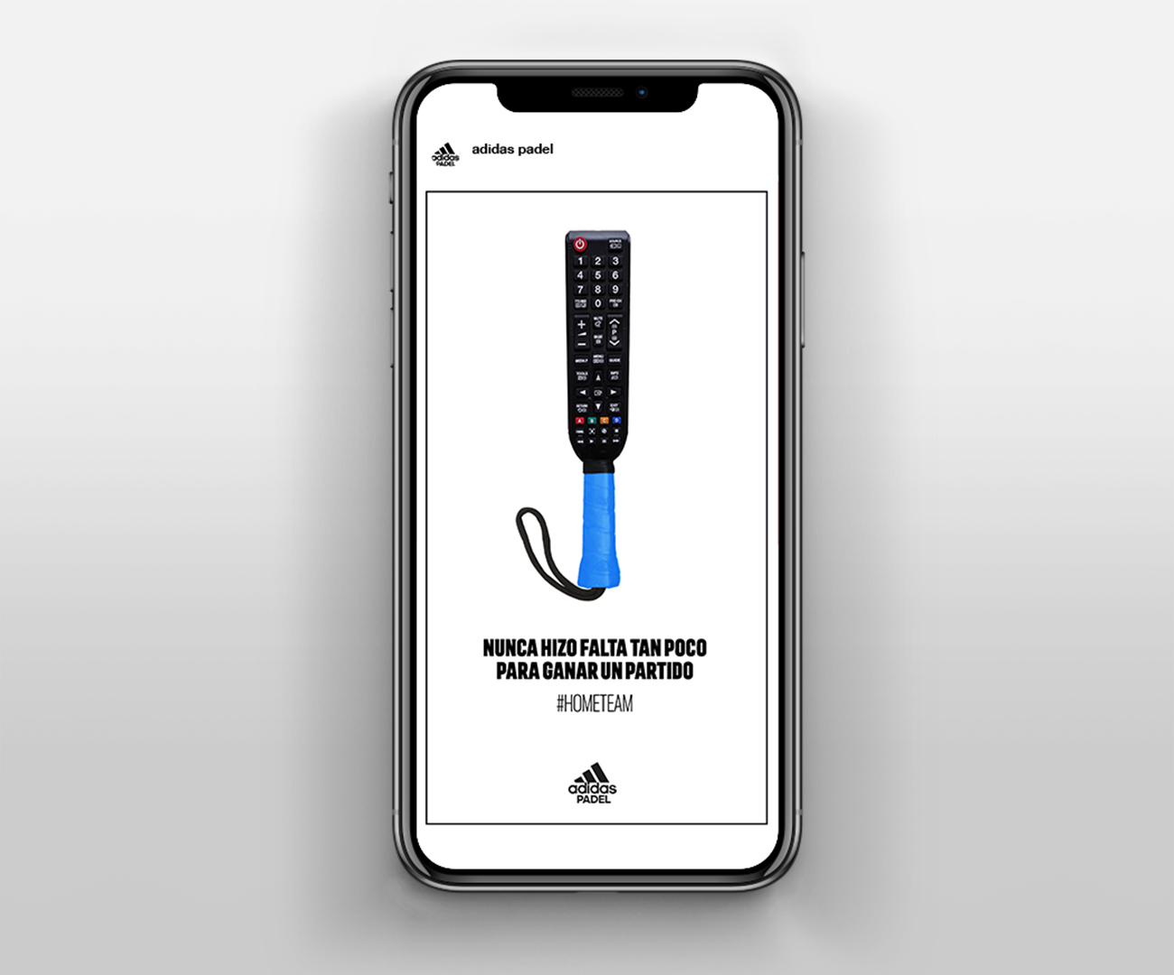 Estos visuales sirvieron como inicio de una campaña interna de adidas padel en la que nuestros jugadores publicaban vídeos con sesiones de entrenamiento para realizar en casa, así como diversos juegos y directos en redes para mantener arriba el ánimo de todos los seguidores de la marca.